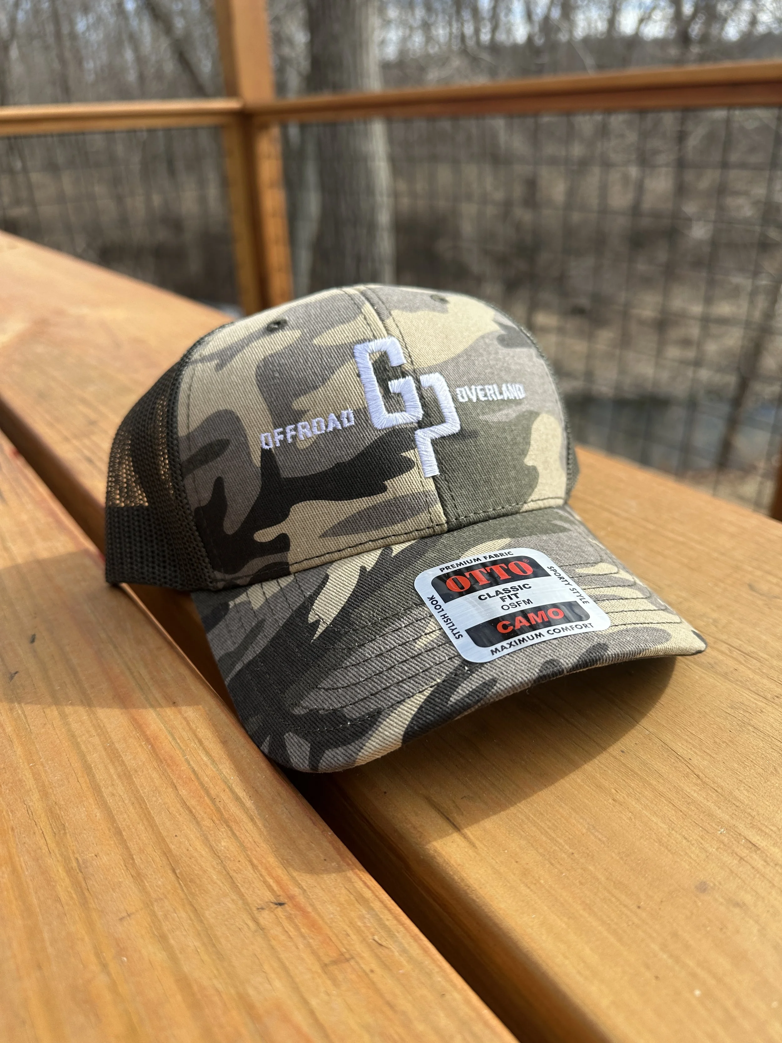 Camo Embroidered Trucker Hat — Outdoorsman Mesh Cap